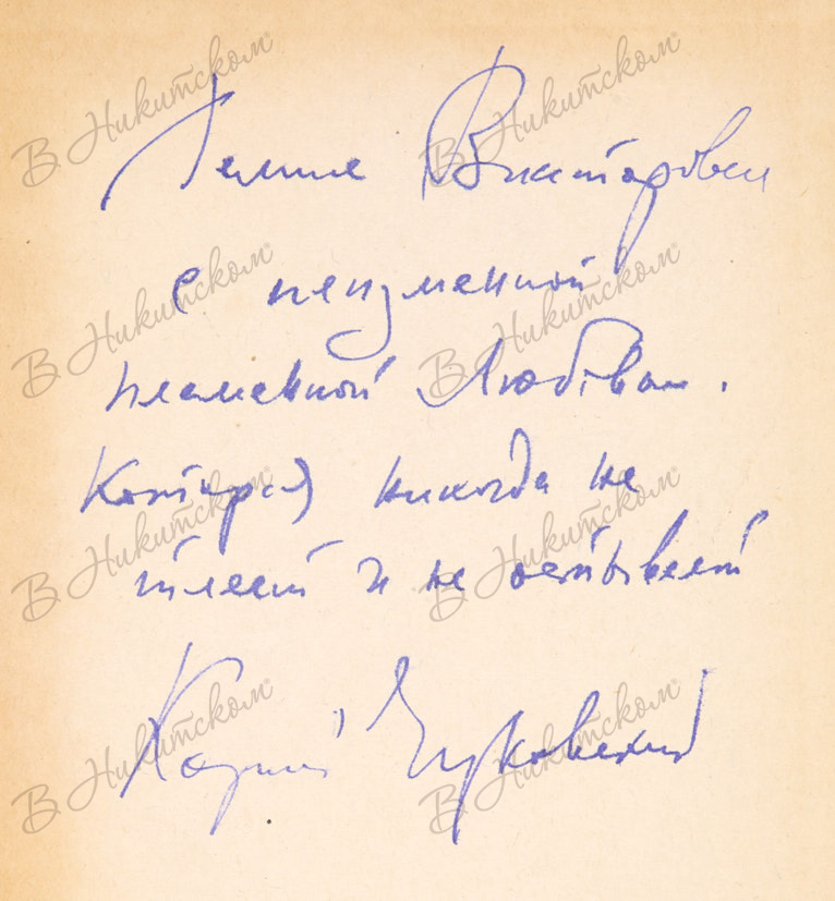 669, [3] с. 22,8 х 15 см. В коленкоровом издательском переплете с золотым и цветным тиснением. Потертости крышек и корешка. Блок чистый. В хорошем состоянии. На форзаце 2б автограф автора: «Галине Викторовне / с неизменной / пламенной любовью, / которая никогда не тлеет и не остывает / Корней Чуковский».