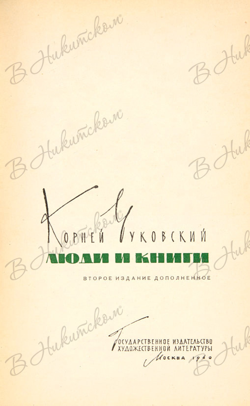 Чуковский, К. [Автограф]. Люди и книги. 2-е издание, дополненное. М.: ГИХЛ, 1960.