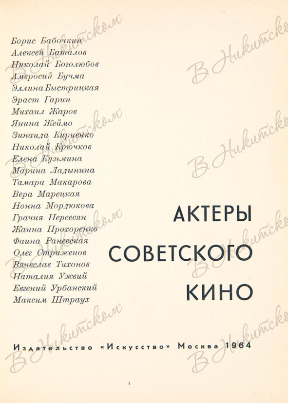 220, [4] с., ил. 21,5 х 16,7 см. В ламинированном издательском иллюстрированном переплете. В очень хорошем состоянии. На форзаце 2а дарственная надпись: «Дорогой Товарищ / Петров! / Прошу принять в / качестве скромной моей / благодарности сборник / из 23-х физиономий с / биографиями из нашего / кино - Ваша Фаневская / код № 18. / (Что говорит о её месте в / этом кино, хотя Макс Штраух / и вовсе последний, а он / Ленина играл!».