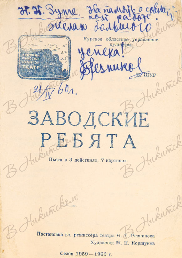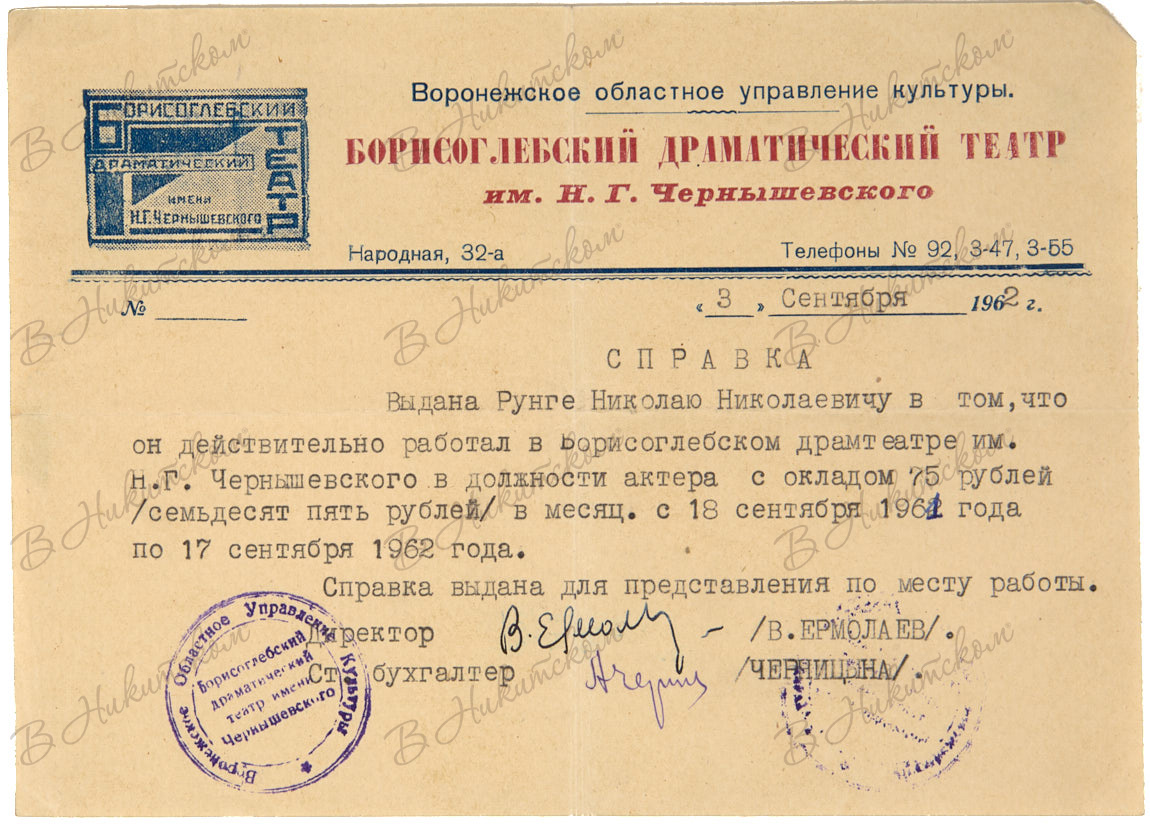 Архив театрального актера и работника театра Николая Николаевича Рунге. 1950-1960-е.