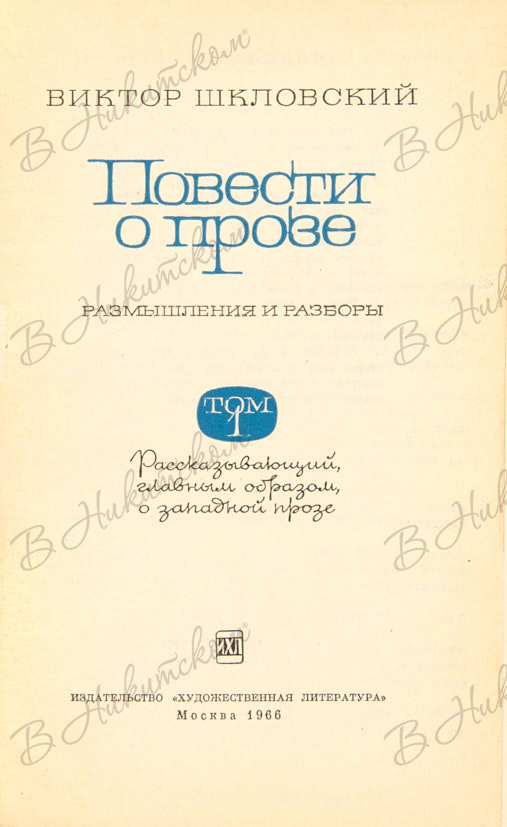 Шкловский, В. [Автограф]. Повести о прозе. М.: «Художественная литература», 1966.