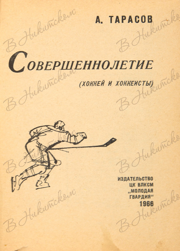 Тарасов, А. [Автограф]. Совершеннолетие. Хоккей и хоккеисты. М.: «Молодая гвардия», 1966.