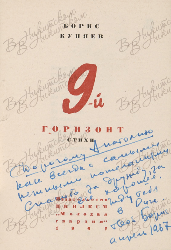 Куняев, Б. [Автограф]. 9-й горизонт. М.: Молодая гвардия, 1967.