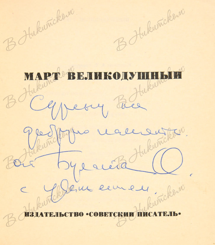 Окуджава, Б. [Автограф]. Март великодушный. М.: «Советский писатель», 1967.