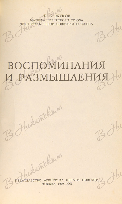 [Автограф Г.К. Жукова]. Маршал Советского Союза Г.К. Жуков. Воспоминания и размышления. М.: Издательство Агентства Печати «Новости», 1969.