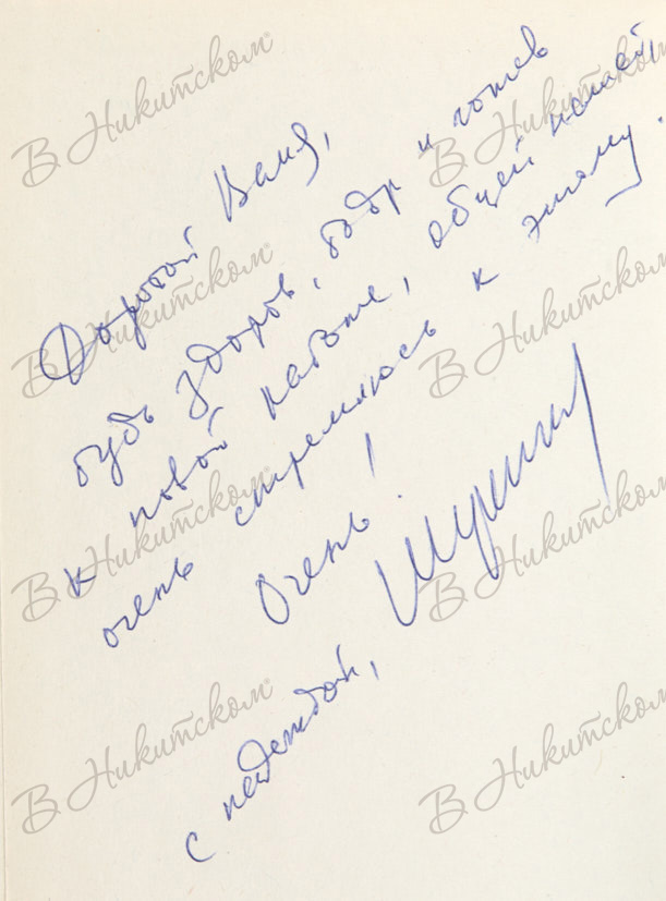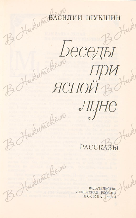 Шукшин, В. [Автограф]. Беседы при ясной луне. М.: «Советская Россия», 1974.