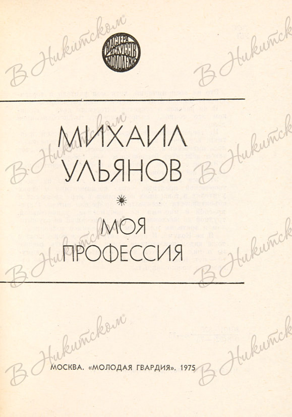 Ульянов, М. [Автограф]. Моя профессия. М.: «Молодая гвардия», 1975.