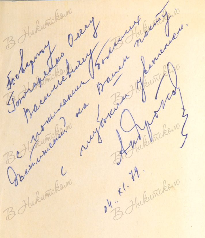 478, [2] с. 20,7 х 13,3 см. В цельнотканевом издательском иллюстрированном переплете. Потертости, загрязнения переплета, следы залития крышек и страниц в начале блока. В остальном блок чистый. На обороте форзаца 2б дарственная надпись: «Товарищу / Гончаренко Олегу / Васильевичу / с пожеланием больших / достижений на Вашем посту. / с глубоким уважением. / Андропов / 04.XI.79.».