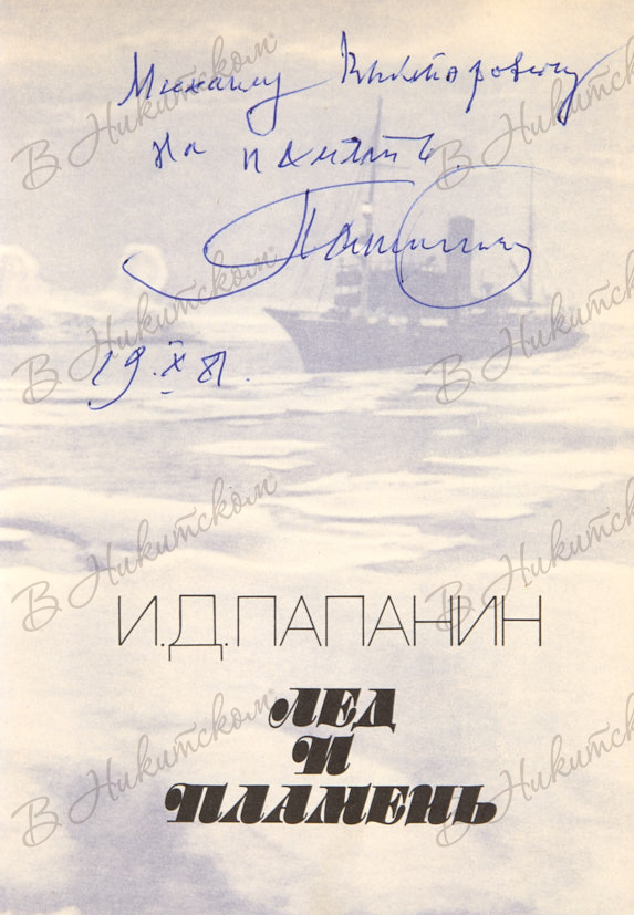 Папанин, И. [Автограф]. Д. Лёд и пламень. М.: Издательство политической литературы, 1977.