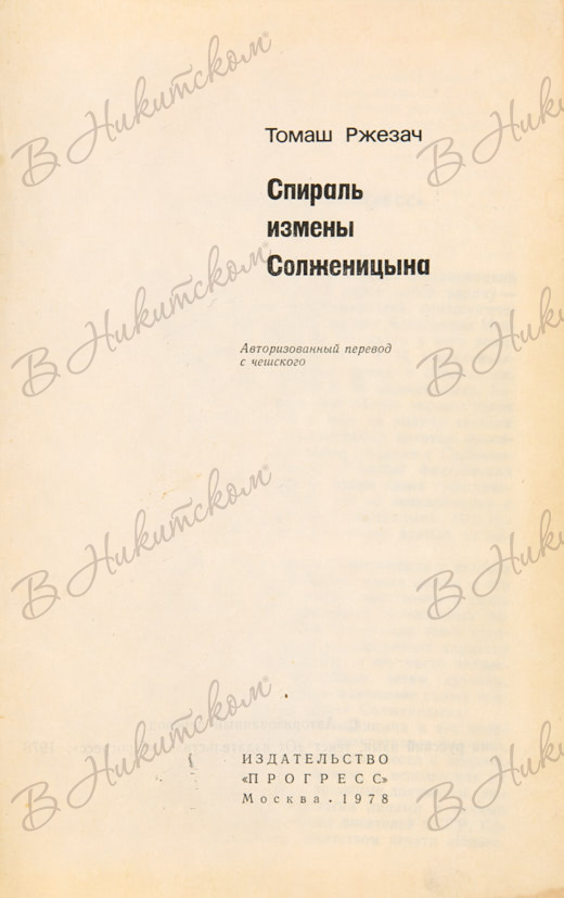 [С вложенной запиской В. Шаламова А. Солженицыну. Поздняя переписка писателей]. Ржезач, Т. Спираль измены Солженицына / авторизованный перевод с чешского. М.: «Прогресс», 1978.