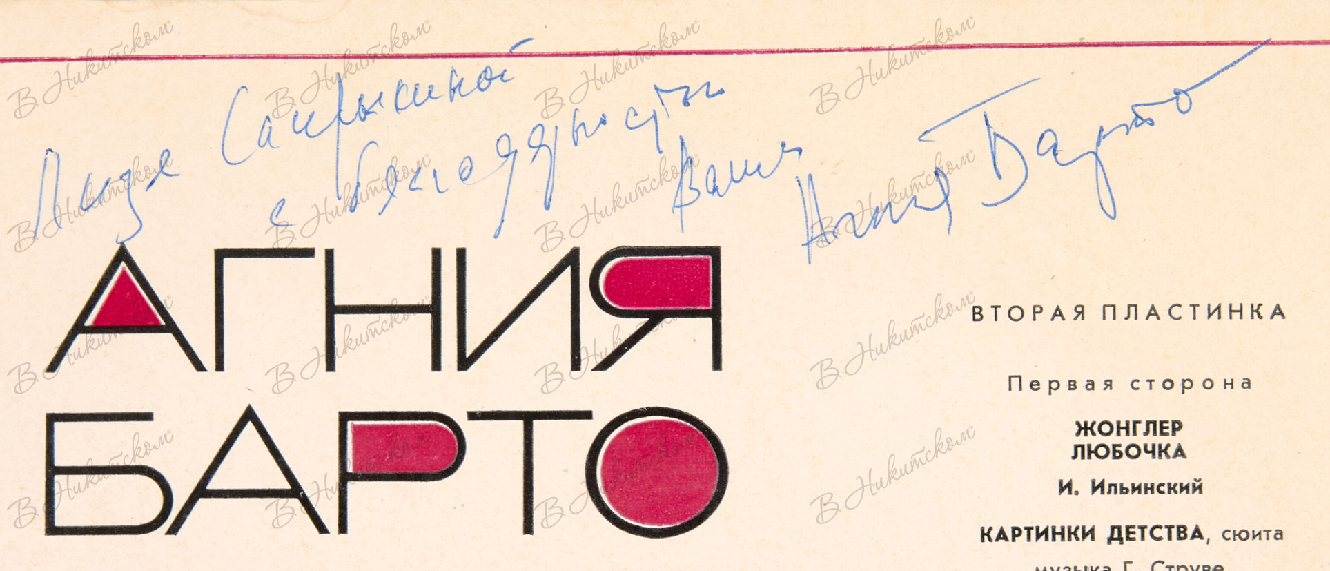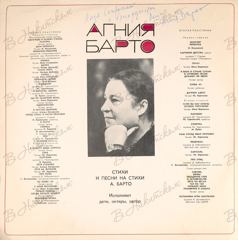 Агния Барто [автограф]. Стихи для детей. Апрелевский завод грампластинок, 1978.