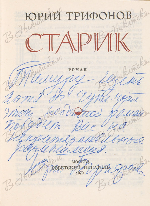 Трифонов, Ю. [Автограф]. Старик. Роман. М.: «Советский писатель», 1979.
