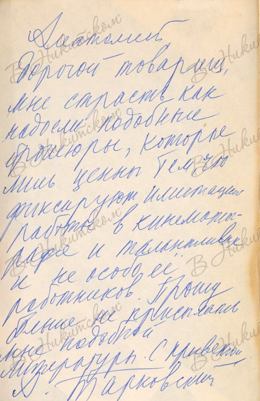 [Автограф Андрея Тарковского]. Четвёртый съезд кинематографистов СССР. Материалы о работе правления Союза Кинематографистов СССР. М.: Союз Кинематографистов СССР, 1981.