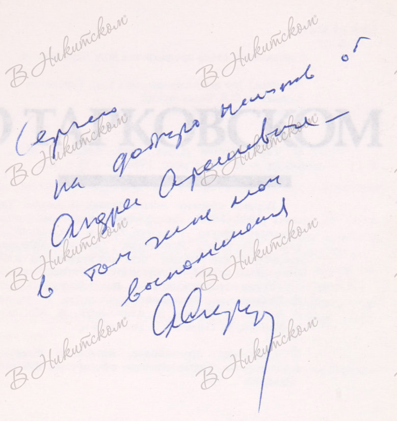 [Автограф Аркадия Стругацкого]. [Тарковская, М.А.]. О Тарковском. М.: «Прогресс», 1989.