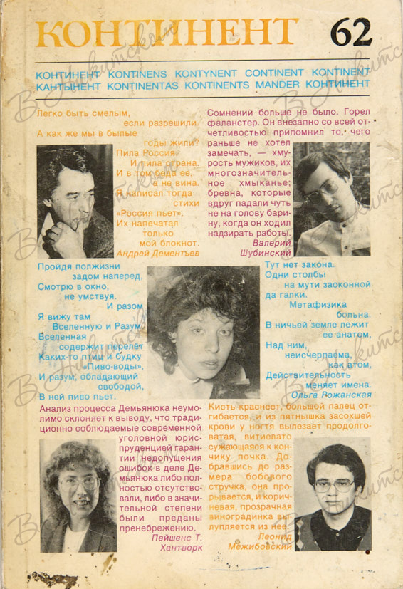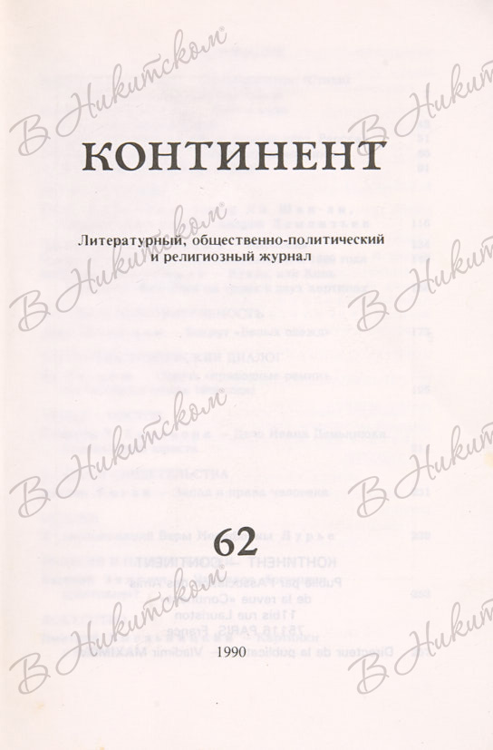 [Автограф Иосифа Бродского]. Континент. Вып. 62. Литературный, общественно-политический и религиозный журнал. Париж, 1990.