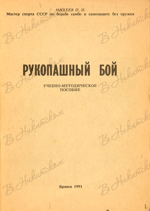 Михеев, П. [Автограф]. Рукопашный бой. Брянск, 1991.
