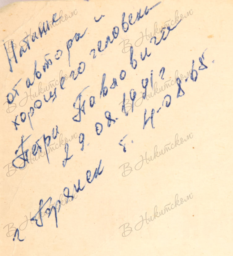 64 c. 19,5 x 14 см. В издательской обложке. Потертости обложки, владельческие пометы на некоторых страницах. На обороте передней обложки дарственная надпись: «Наташе / от автора / и хорошего человека / Петра Павловича / 29.08.1991 г. /г. Брянск».