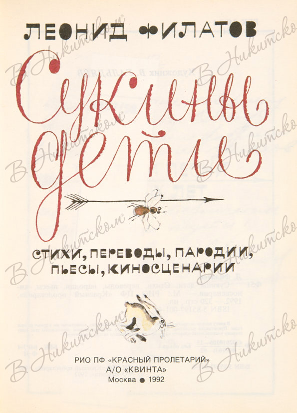 Филатов, Л. [Автограф]. Сукины дети. М.: «Красный пролетарий»; «Квинта», 1992.
