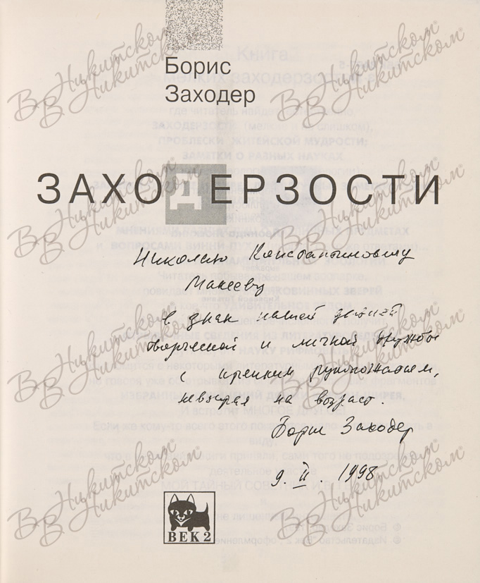 Заходер, Б. [Автограф]. Заходерзости. М.: Век 2, 1997.