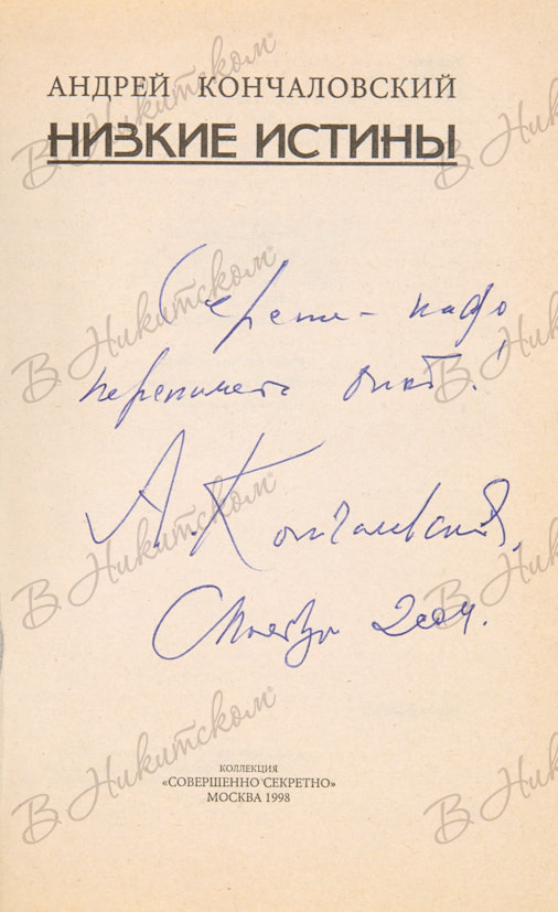 Кончаловский, А. [Автограф]. Низкие истины. М.: «Совершенно секретно», 1998.