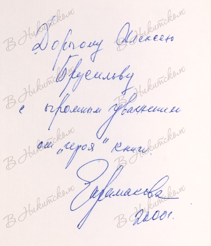 424, [8] с. 20,6 х 13,4 см. В иллюстрированном издательском переплете. В отличном состоянии. На обороте форзаца 2а дарственная надпись: «Дорогому Алексею / Брусилову / с огромным уважением / от «героя» книги. / ЕПримакова / 2000 г.».