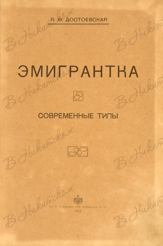 Достоевская, Л.Ф. Эмигрантка. Современные типы. СПб.: Тип. П.П. Сойкина, 1912.