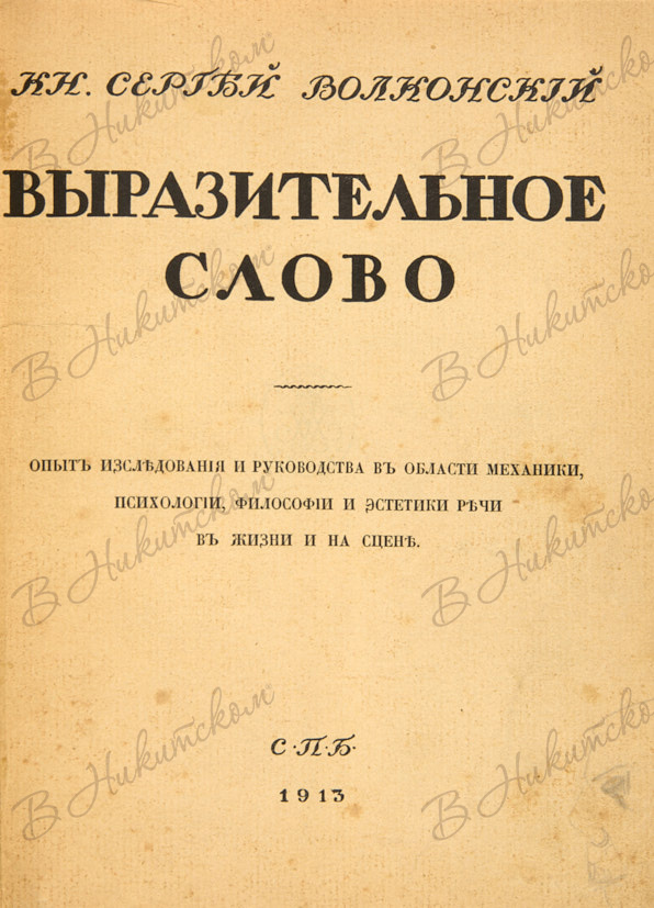 Кн. Волконский, С. Выразительное слово / Опыт исследования и руководства в области механики, психологии, философии и эстетики речи. СПб., 1913.