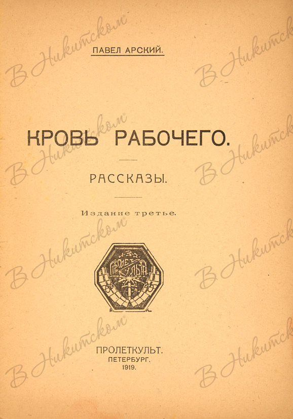 [Серия «Библиотека Пролеткульта»]. Арский, П. Кровь рабочего. Рассказы. Издание 3-е. Пб.: Пролеткульт, 1919.