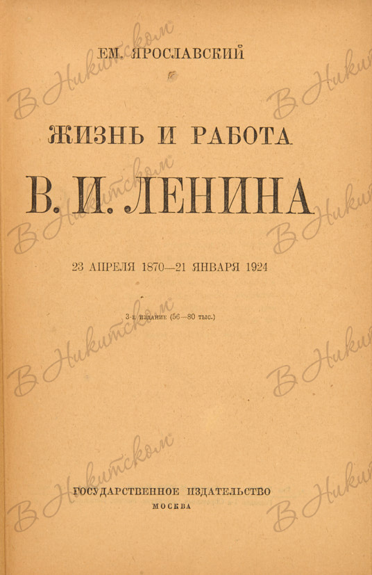 Ярославский, Ем. Жизнь и работа В.И. Ленина. 23 апреля 1870 – 21 января 1924. Издание 3-е. М.: Государственное издательство, 1924.