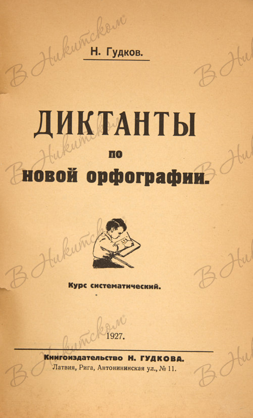 Гудков, Н. Диктанты по новой орфографии. Курс систематический. 1927. Рига: Книгоиздательство Н. Гудкова, 1927.