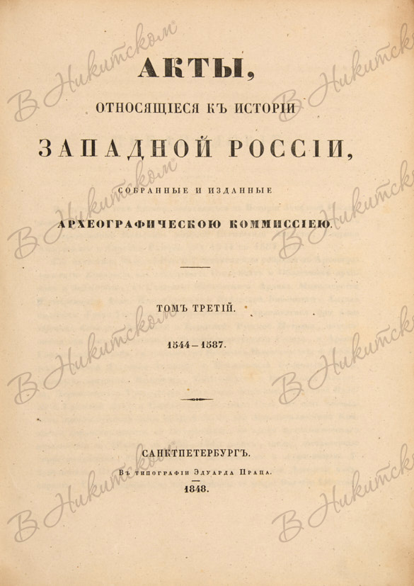 Акты, относящиеся к истории Западной России, собранные и изданные археографическою комиссиею. В 5 т. Т. 3. СПб.: В Тип. Э. Праца, 1848.