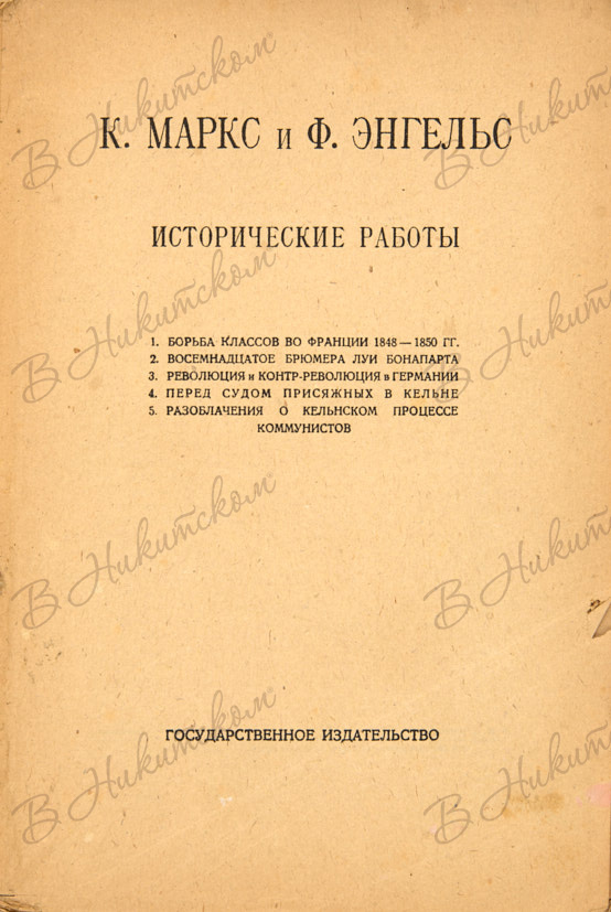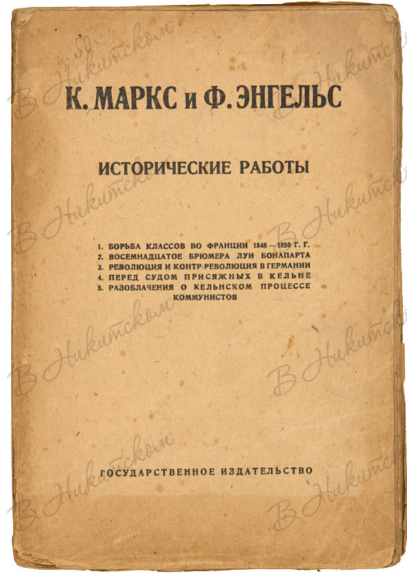К. Маркс и Ф. Энгельс. Исторические работы. М.: Государственное издательство; 20-я Гос. тип., б.г.