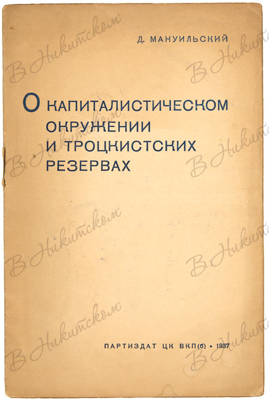 4. Мануильский, Д. О капиталистическом окружении и троцкистских резервах. М.: ПАРТИЗДАТ, 1937. 15, [1] с. 19,7 х 13 см. В шрифтовой издательской обложке. Владельческая надпись простым карандашом на задней сторонке обложки. В хорошем состоянии.