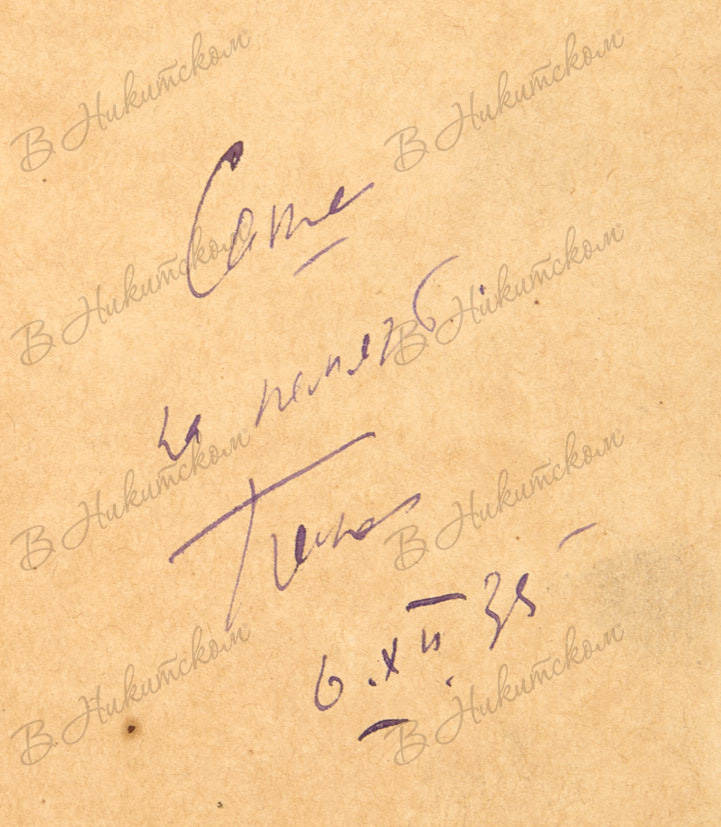 97, [3] c. 14,9 х 10,9 см. В коленкоровом издательском переплете с блинтовым и цветным тиснением работы М.А. Доброва. Суперобложка утрачена. Потертости переплета и корешка, следы жучка на задней крышке.