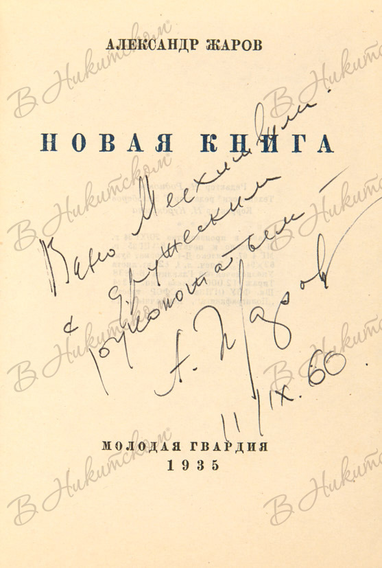 Жаров, А. [Автограф]. Новая книга. М.: «Молодая гвардия», 1935.