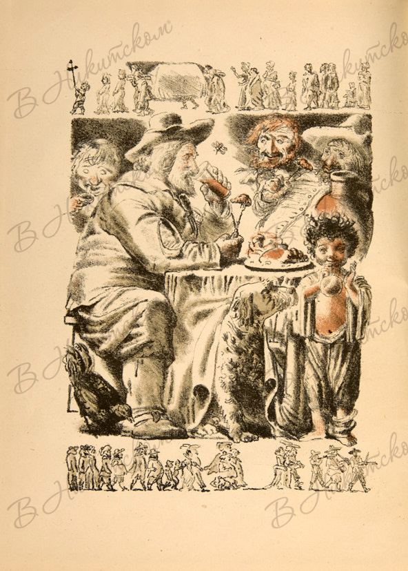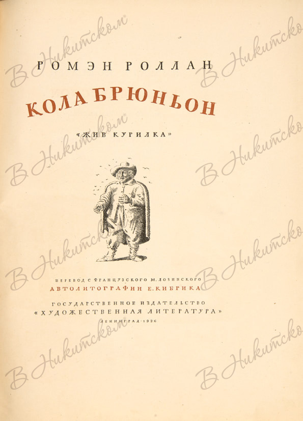 Роллан, Р. Кола Брюньон. «Жив Курилка» / пер. с фр. М. Лозинского, автолитогр. Е. Кибрика. Л.: Художественная литература, 1936.