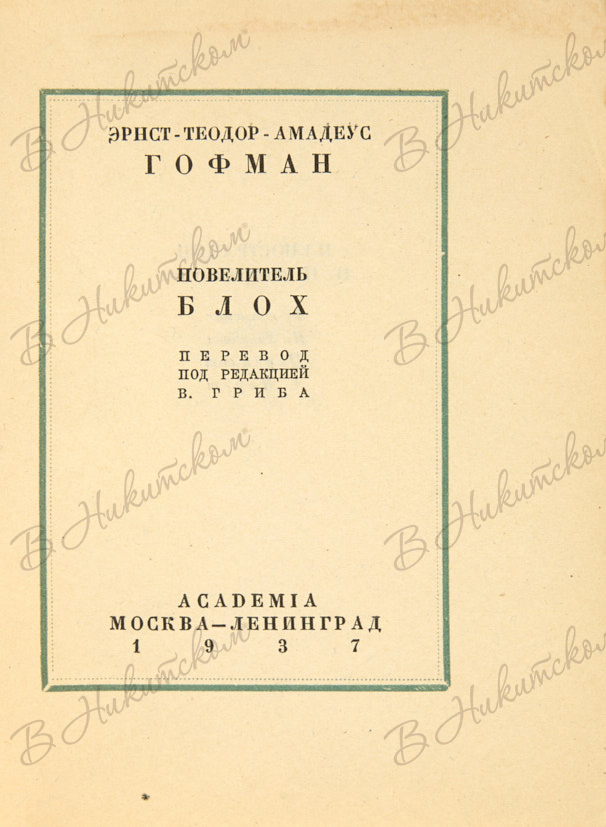 Гофман, Э.Т.А. Повелитель блох / пер. M.A. Петровского, пред. П.К. Губера, ил. А.И. Кравченко, оформ. П А Шиллинговского. М.; Л.: Academia, 1937.