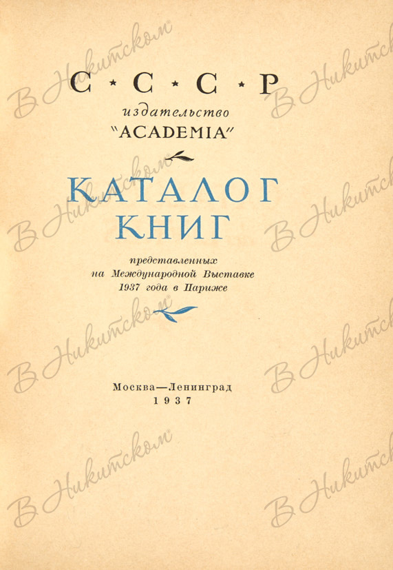 СССР. Издательство «Academia». Каталог книг, представленных на Международной выставке 1937 года в Париже / оформ. Евг. Коган. М.; Л.: Academia, 1937.