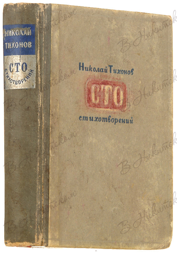 266, [2] с. 13,4 х 10,2 см. В картонажном издательском переплете, тканевый корешок. Потертости переплета и корешка. Надлом переднего форзаца. Многочисленные «лисьи» пятна в блоке. На обороте форзаца 2а автограф автора: «Валентине Ивановне / Поскребышевой / прошу Вас принять / чинный скромный дар / мои "Сто стихотворений" / с робким пожеланием / прочесть ее в минуты / досуга и благодарностью / настроения. / Ник Тихонов».