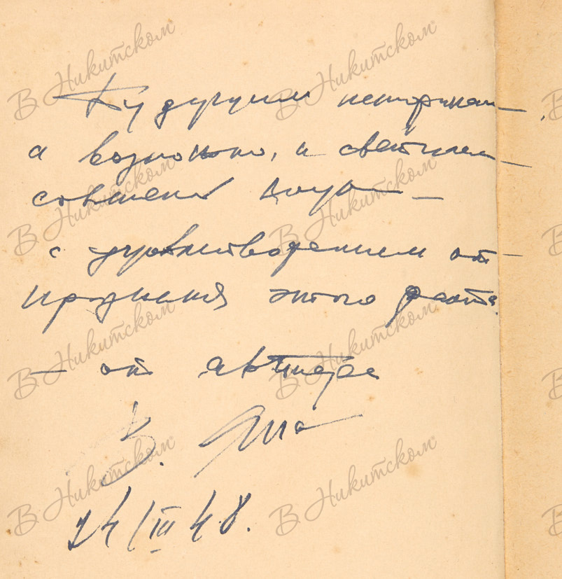 254 с., ил. 20,5 х 13,5 см. В картонажном издательском иллюстрированном переплете, тканевый корешок. Потертости и загрязнения переплета, «лисьи» пятна в блоке. На обороте форзаца 2а автограф автора: «Будущим историкам, / а возможно и светилам / советской науки - / с удовлетворением от / признания этого факта. / От автора / В. Яна / 24/III 48.».