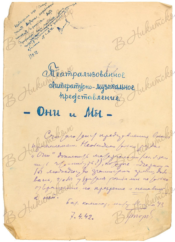 Архив агитационного ансамбля «Красноармейская зарядка». [1941-1942].