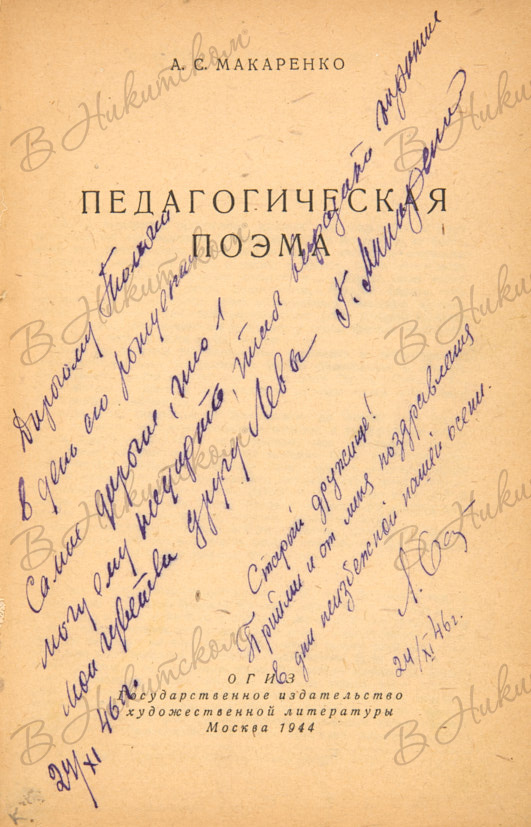 Макаренко, А.С. Педагогическая поэма. М.: ОГИЗ, 1944.
