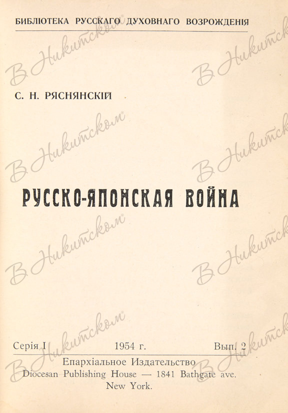 Ряснянский, С.Н. Русско-японская война. Нью-Йорк: Епархиальное Издательство, 1954.