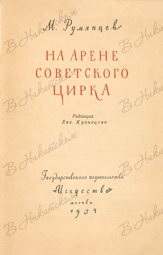 Румянцев, М. [Автограф]. На арене советского цирка / ред. Евг. Кузнецова. М.: Гос. изд. «Искусство», 1954.