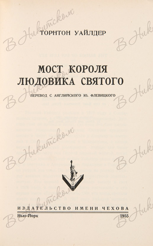 Уайлдер, Т. Мост короля Людовика святого / пер. с англ. Ю. Флевицкого. Нью-Йорк: Издательство имени Чехова, 1955.