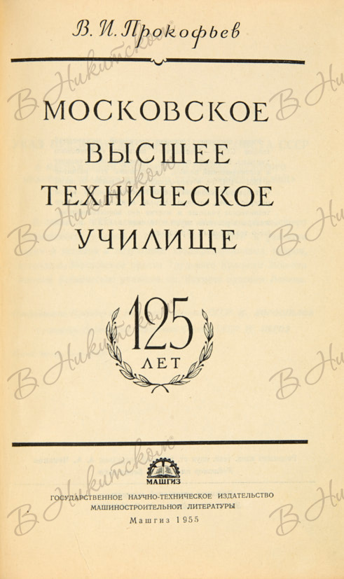 Прокофьев, В.И. [Автограф]. Московское высшее техническое училище. Л.: МАШГИЗ, 1955.