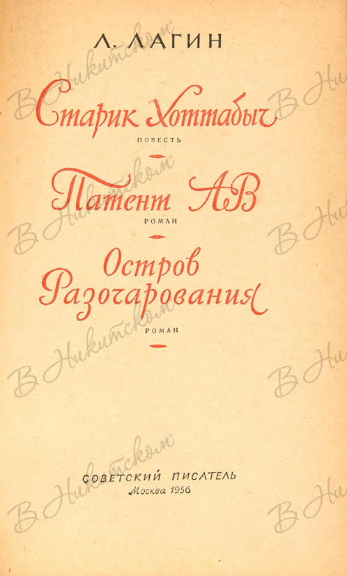 Лагин, Л. [Автограф]. Старик Хоттабыч. Патент «АВ». Остров разочарования. М.: «Советский писатель», 1956.