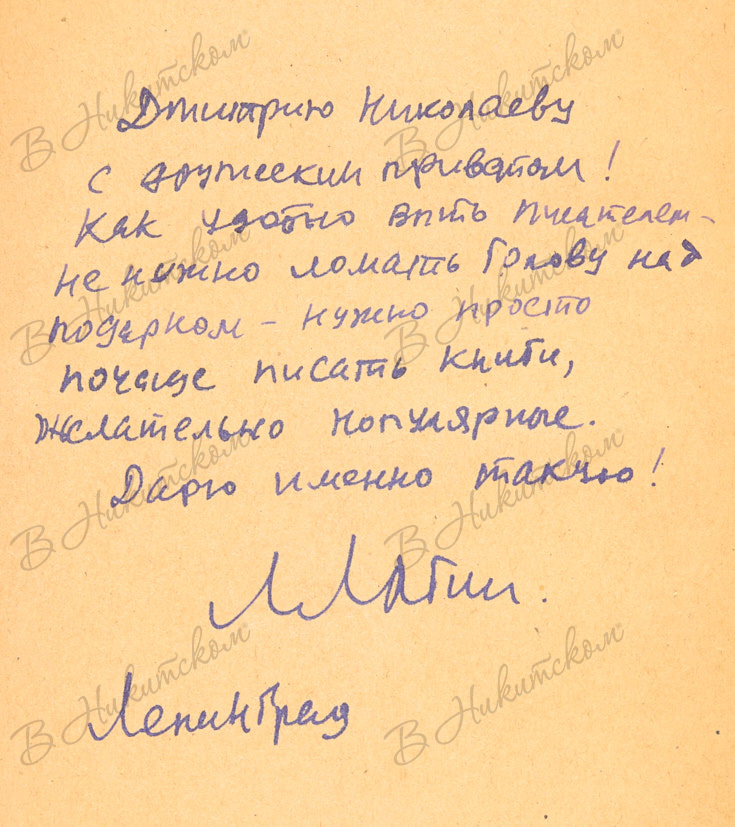 815, [5] с. 22,7 х 15,3 см. В цельнотканевом издательском переплете. Потертости, загрязнения переплета. Надрыв корешка. Надлом переднего форзаца, корешок отстает от блока. На обороте форзаца 2а автограф автора: «Дмитрию Николаеву / с дружеским приветом! / Как удобно быть писателем - / не нужно ломать голову над / подарков - нужно просто / почаще писать книги, / желательно популярные. / Дарю именно такую! / Л. Лагин. / Ленинград».