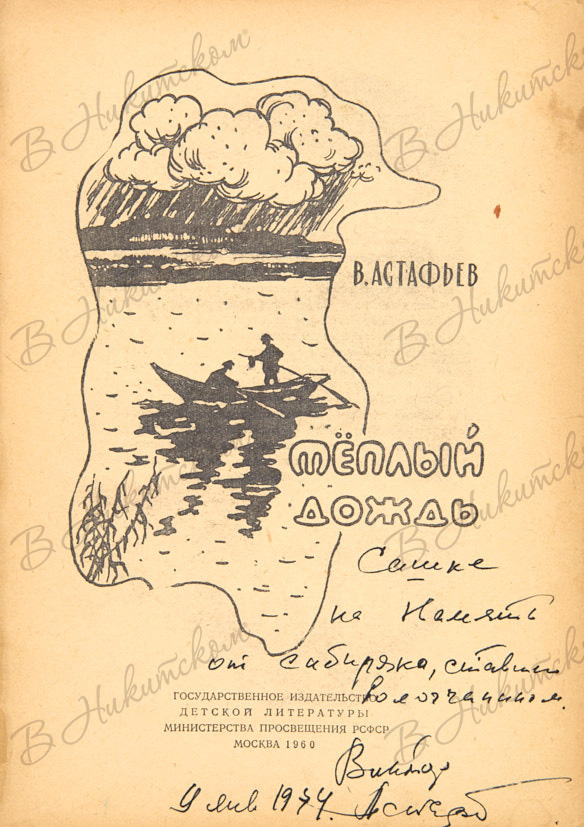 Астафьев, В. [Автограф]. Тёплый дождь. М.: ДЕТГИЗ, 1960.