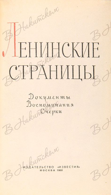 [Автограф О.И. Ульяновой]. Ленинские страницы. Документы. Воспоминания. Очерки. М.: Издательство «Известия», 1960.